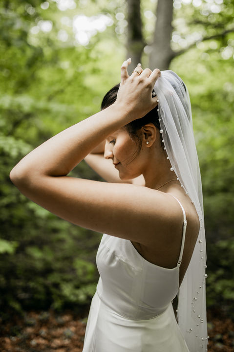 Dagen börjar med att jag möter upp Sandra och Attila vid Eds kyrka i Upplands Väsby där vi ska börja med parfotografering i lugn och ro innan gästerna anländer, vi går in i skogen på andra sidan vägen och fångar så fina bilder! Jag har även min assistent (/sambo) med mig som hjälper mig med allt från tider, till bära väska till fota lite behind the scenes.