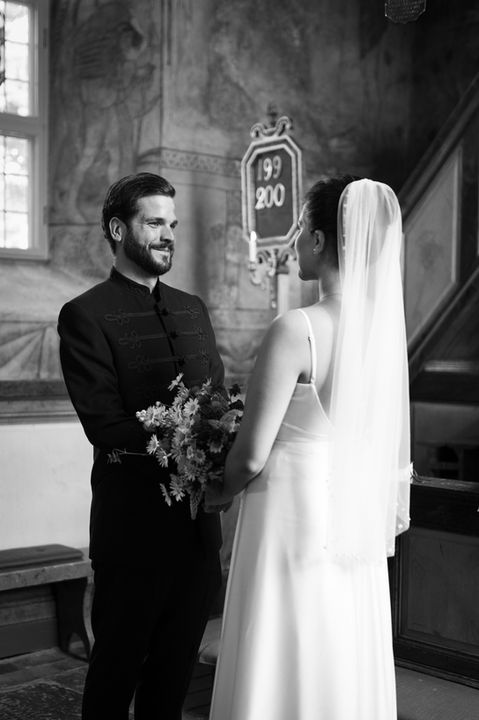 Nu börjar tiden för ceremonin att närma sig, men innan det ska vi få till en first look. I vanliga fall brukar paren vilja göra en first look med varandra, men i detta fall var det inte nödvändigt, idag kör vi en first look med närmsta familjen. Och så gulligt det blev! Detta rekommenderar jag starkt! Att föräldrarna blir placerade med ryggen mot paret, paret kommer in och ställer sig på plats och därefter vänder sig föräldrarna och de får en genuin och fin reaktion på det vackra brudparet.