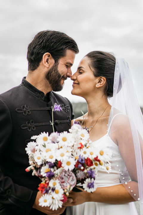 När stunden är över är det dags för paret och gå och gömma sig, gästerna tar plats i kyrkan och jag väntar i kyrkgången på att fånga första ögonblicken när de kommer in till kyrkan och möter allas blickar. Det är en fin ceremoni där de har en vännina som är med och sjunger och en annan med piano. Löften delas, ringar trädes på och den stora kyssen äger rum, som sedan möts av applåder och glädjetårar samtidigt som brudparet går ut från kyrkan med Ted Gärdestads "Oh vilken härlig dag" spelas på orgel. Brudparet möts av rosenblad som kastas upp i luften och ett stort kramkalas drar igång, sedan är det dags att ta hela gänget och gå till en trädgård 300m bort där det är dags för brudskål, snacks och mera kramar.